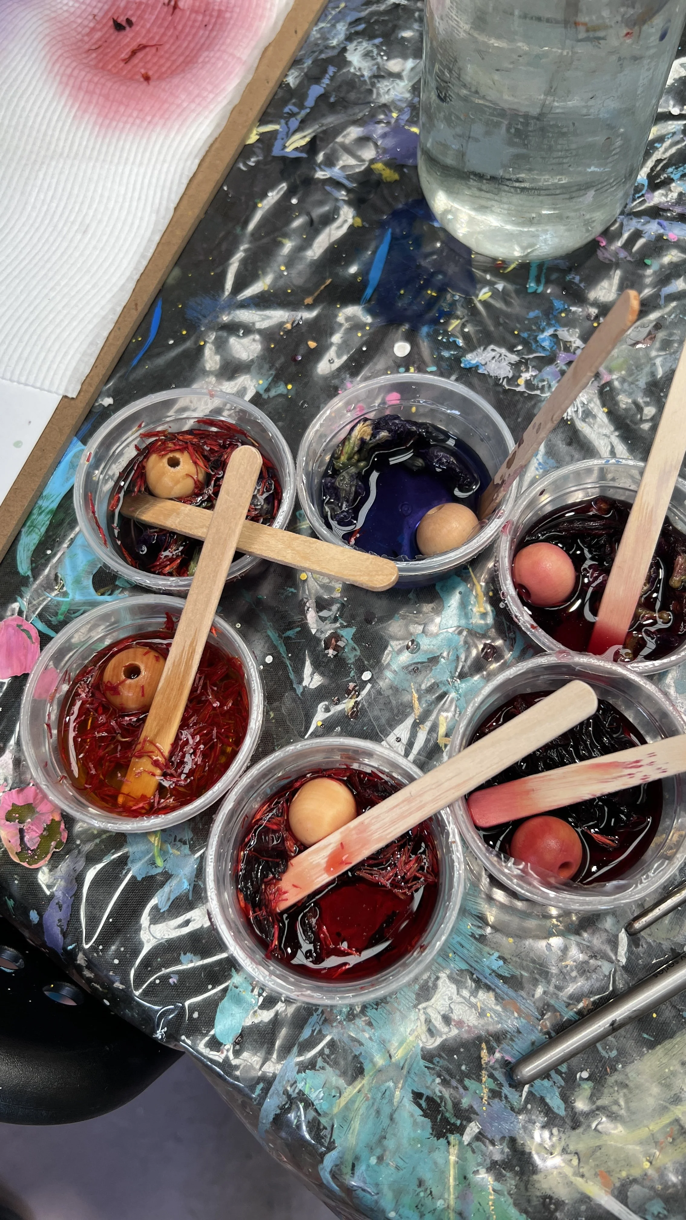 This week in our Calm Creative Kids classes, we’ve been making our own paints, using floral teas!