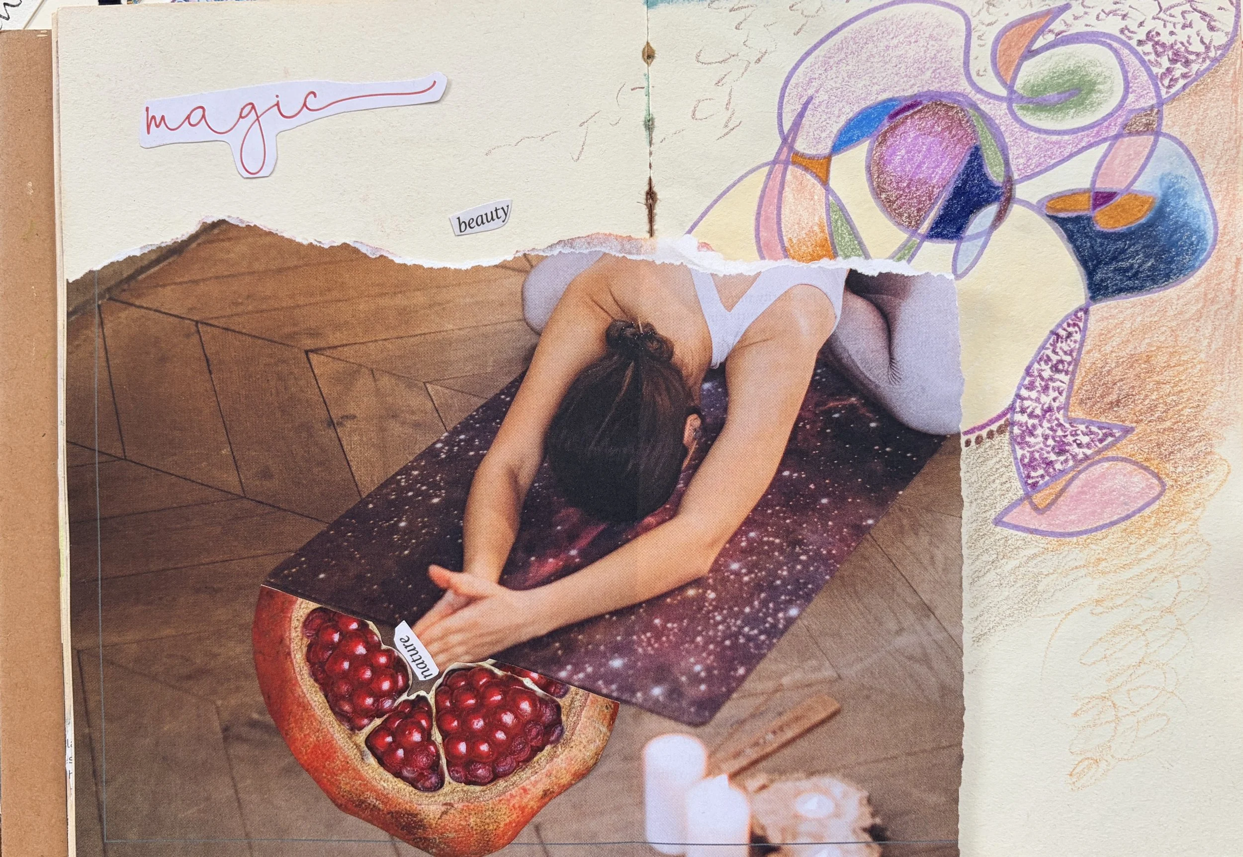 So in this post, I’m going to share some images from my own therapeutic arts sketchbooks and digital collages, alongside some fabulous lived-experience research, to redefine a contemporary approach to nourishing needs in perimenopause: shifting purely from the medical model, into a spiritual, creative, collective community awakening.